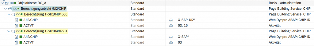 - Das Berechtigungsobjekt /UI2/CHIP wird für die Transaktion /UI2/FLP und einige der oben genannten Services benötigt und ist daher automatisch in folgender Ausprägung in der Rolle enthalten: