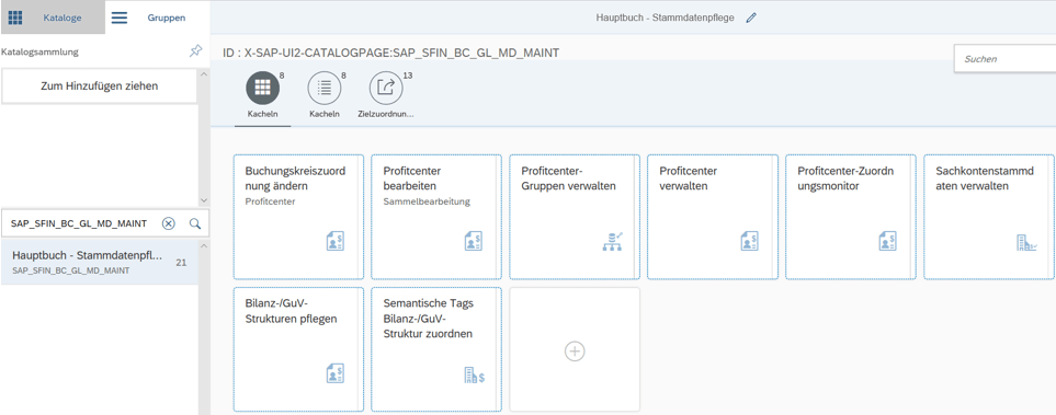 Fiori-Kataloge sind eine Sammlung von Apps, die logisch zusammengehören. In ihnen werden die Kacheln (z.B. Titel, Icon) und die Zielzuordnung definiert.