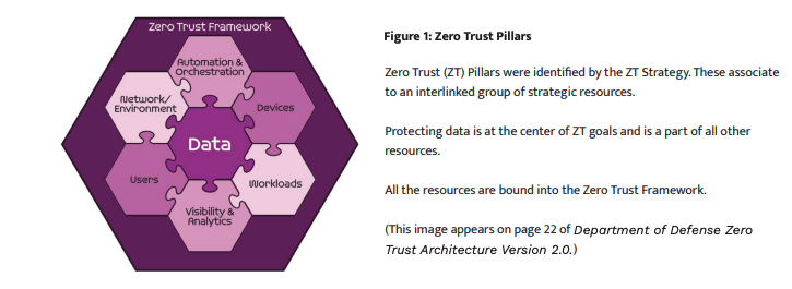 The DoD Zero Trust Reference Architecture defines seven Zero Trust Pillars, each mapping to various underlying requirements. Per the DoD ZT-RA, a Pillar is a key focus area for implementing Zero Trust controls. These seven pillars provide the foundations for a Zero Trust Security Model and the DoD Zero Trust Architecture.