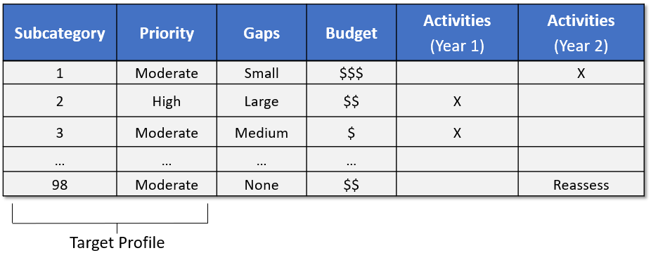 Profiles are an organization’s unique alignment of its organizational requirements and objectives, risk appetite, and resources against the desired outcomes of the Framework Core. Profiles can be used to identify opportunities for improving the organization’s current cybersecurity maturity levels by comparing a “Current” Profile with a “Target” Profile.