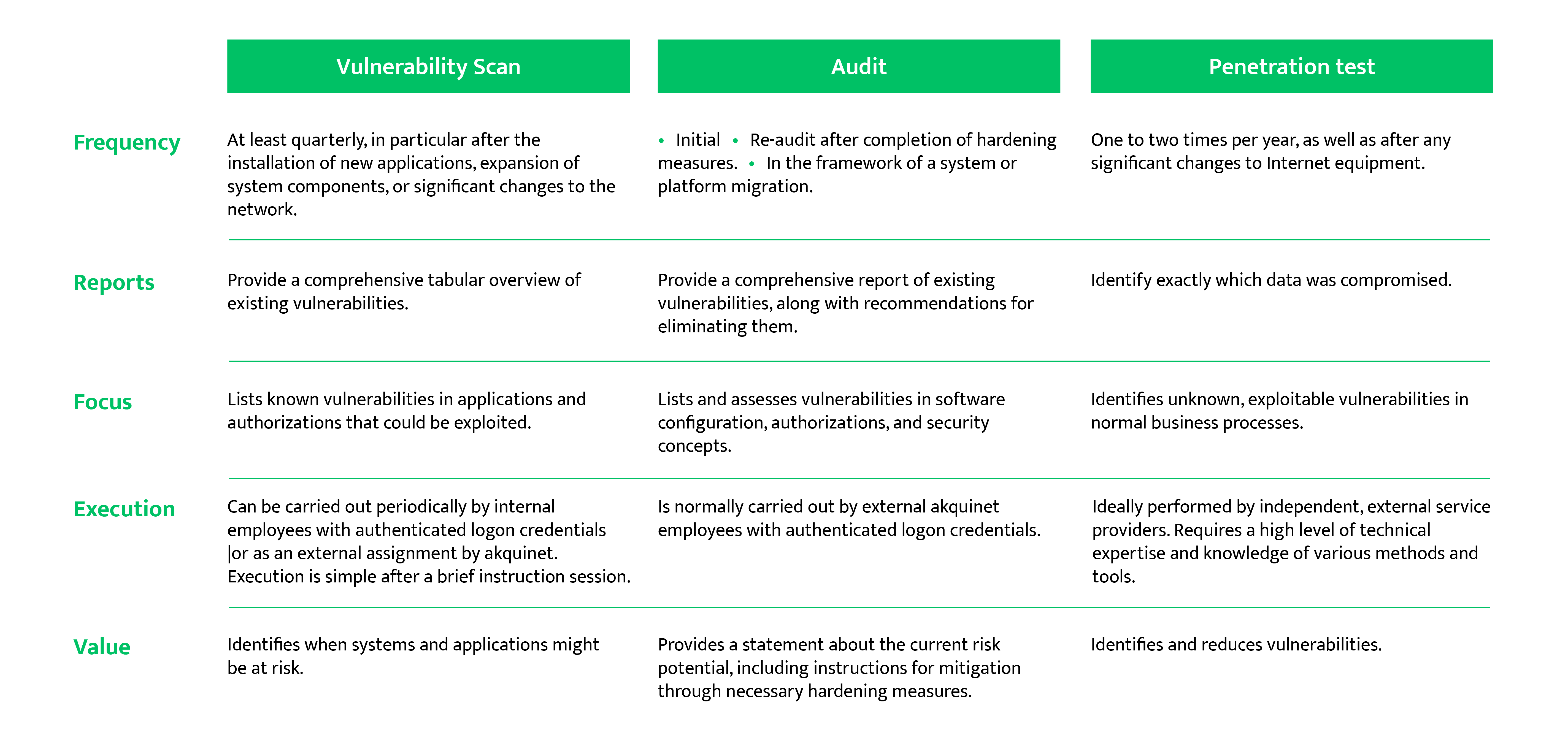 While the most suitable approach for identifying vulnerabilities depends entirely on your unique business requirements and diverse security methodologies, each emphasizes different approaches and can be employed to assess the security posture of your SAP system landscape.