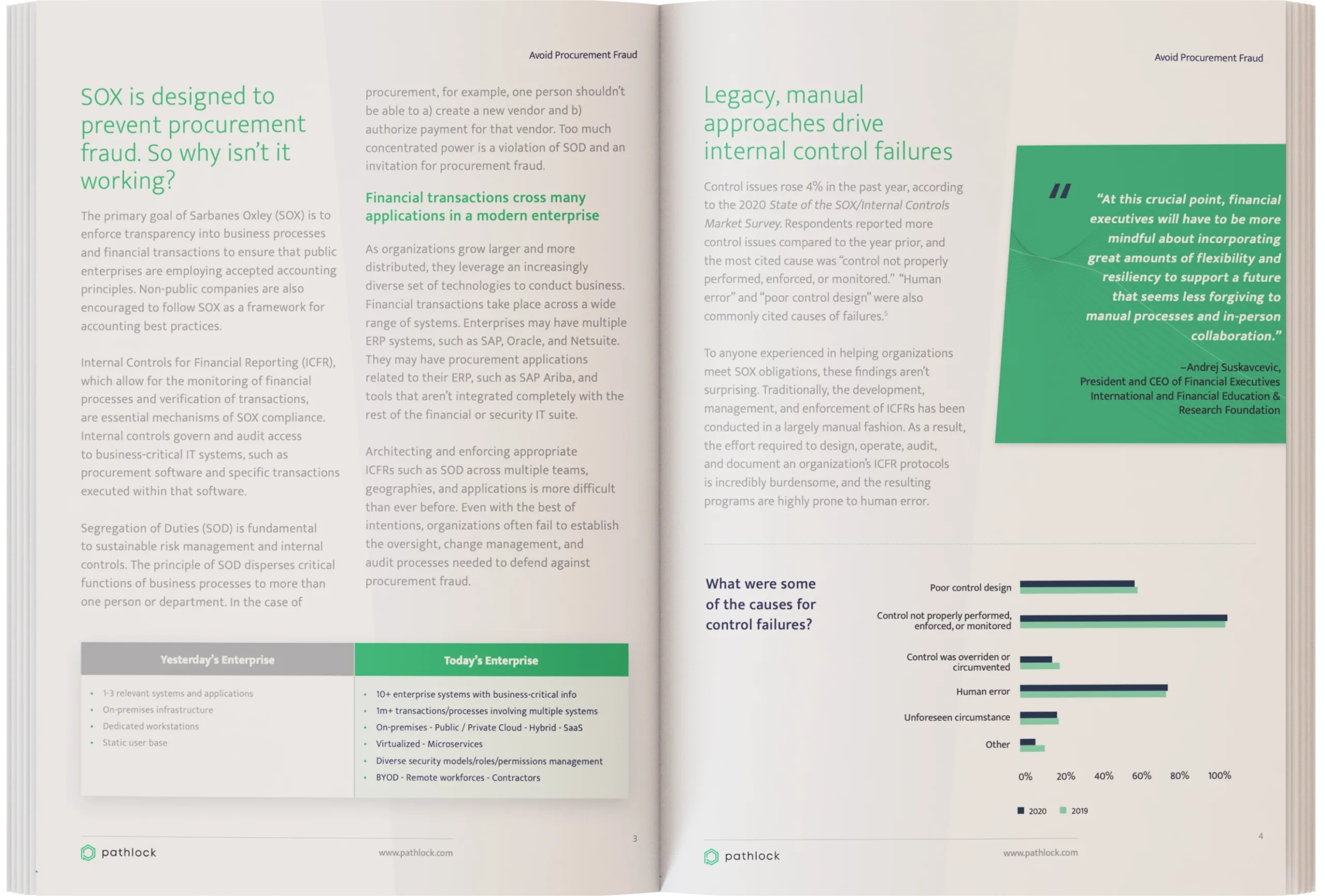 Procurement fraud is increasingly sophisticated, often driven by insider threats and enabled by fragmented, manual controls. This eBook explores the limitations of legacy ICFR practices, shares real-world fraud cases, and outlines how automation, continuous monitoring, and access orchestration can proactively prevent procurement fraud. Learn how Pathlock’s unified platform simplifies risk management and protects your organization in today’s complex, multi-application environments.
